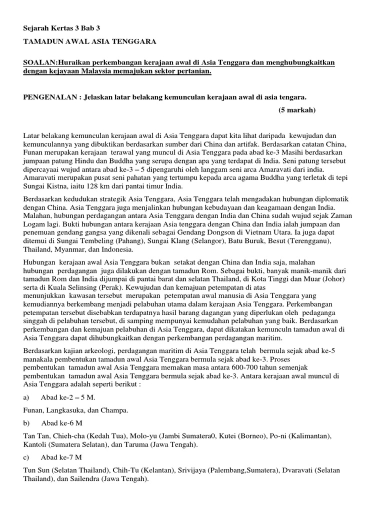 Tamadun Awal Asia Tenggara Kertas 3 Esei