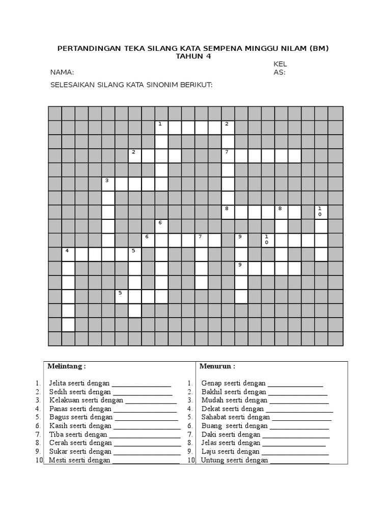 Bermacam Teka Silang Kata Sinonim Yang Sangat Hebat Untuk Murid Download Pekeliling Terbaru Kerajaan