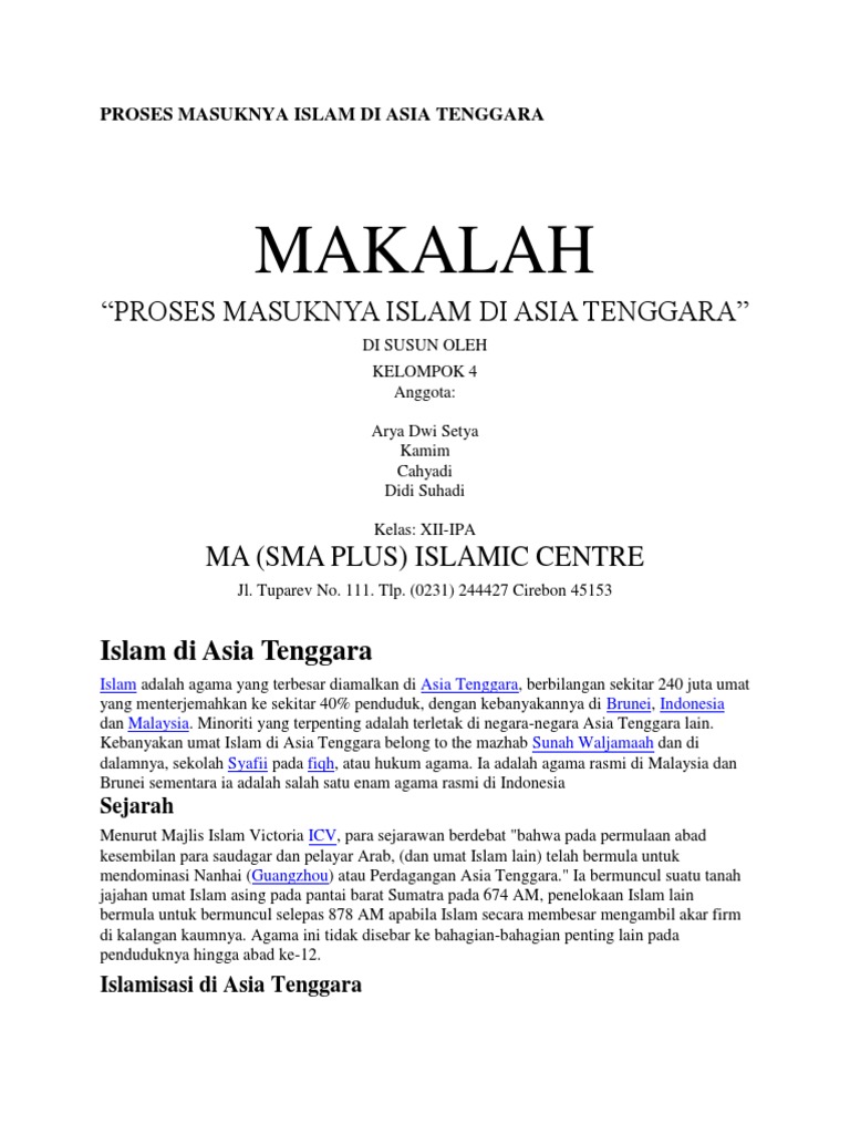 Doc Makalah Peradaban Islam Di Asia Tenggara Salis Masruhin Academia Edu