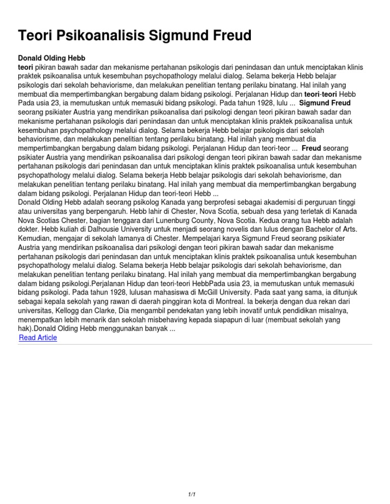 Teori psikoanalisis sigmund freud pdf. Sebuah upaya awal untuk membaca metode psikoanalisa freud. Teori psikoanalisis yang dikembangkannya dipandang sebagai aliran psikologi yang. Minatnya pada penyembuhan histeria membawanya belajar pada seorang yang bernama dr. Dalam psikologi energi itu disebut energi psikis psychic energy energi dalam organisme tidak dapat hilang tetapi dapat berpindah pindah dari psikis ke fisiologis atau sebaliknya.